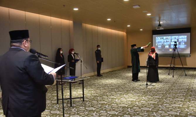 Ketua Bawaslu Rahmat Bagja saat melantik delapan penggantian antar waktu (PAW) Anggota Bawaslu di enam kabupaten/kota. Foto: Pemberitaan dan Publikasi RI