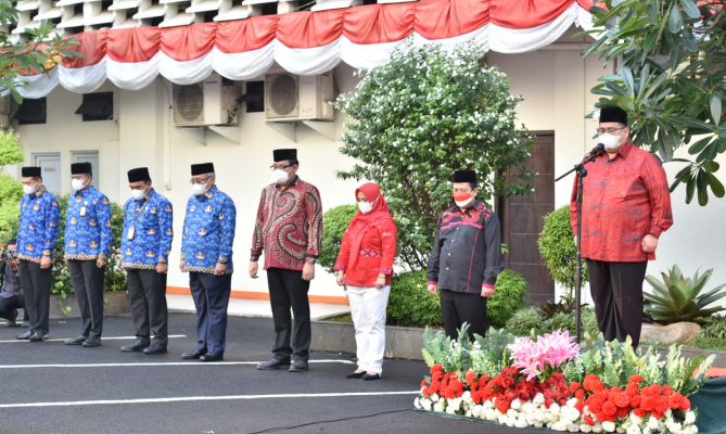 Ketua Bawaslu Rahmat Bagja meminta jajaran Bawaslu merefleksikan semangat kemerdekaan dengan bekerja sepenuh hati. Hal itu disampaikannya saat jadi pembina upara peringatan hari kemerdekaan di lapangan gedung Bawaslu, Jakarta, Rabu (17/8/2022).