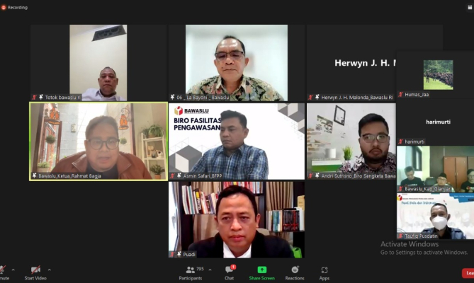 Ketua Bawaslu Rahmat Bagja saat rapat daring Pengawasan Tahapan Pendaftaran, Verifikasi, dan Penetapan Partai Politik Peserta Pemilihan Umum Tahun 2024, Sabtu (30/7/2022).