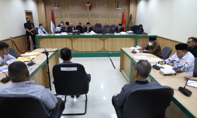 Jakarta, Badan Pengawas Pemilihan Umum – Bawaslu melakukan sidang pemeriksaan saksi-saksi yang diajukan Partai Negeri Daulat Indonesia (Pandai) dan Partai Partai Masyumi. Secara terpisah, Rabu (7/0/2022) Sidang yang dipimpin Ketua Majelis Puadi dan Anggota Majelis Herwyn JH Malonda dan Totok Hariyoo di ruang siding Bawaslu, Jakarta, Rabu (7/9/2020) ini meminta keterangan dari tiga saksi yang diajukan Partai Pandai dan tujuh saksi dari Partai Masyumi yang terbagi dua saksi ahli dan lima saksi fakta. Puadi mempersilakan pihak pelapor atas laporan 011/PL/ADM/RI/00.00/VIII/2022 dari Partai Pandai. Kuasa hikum Partai Pandai, Muhammad Rizaldi Hendriawan pun menghadirkan ketiga saksi fakta yang didahului verifikasi. “Pelapor Partai Pandai menghadirkan tiga saksi fakta yakni Nadzif Subkhi selaklu koordinator IT (informatika teknologi) Partai Pandai. Kedua, Bapak Risno Mukaram koordinator wilayah Maluku Utara dan ketiga Muhammad Indra yang ikut pendaftaran Partai Pandai di KPU RI,” katanya. Secara umum, ketiga saksi memberikan keterangan mengenai kendala teknis dalam proses pendaftaran dan pemasukan data melalui Sistem Informasi Partai Politik (Sipol). “Teknis Sipol pada waktu awal pendaftaran sampai input data selama satu minggu aman, tetapi menjelang minggu kedua ternyata mengalami error. Ini hal yang lumrah, tetapi ini juga mengganggu proses penginputan data,” kata Nadzif Subkhi. Nadzif mengaku adanya situasi laporan dari daerah seperti Papua yang mengalami kedala. “Di pada 28 Juli melaporkan erorr dan tak bisa log in (masuk). Lalu disampaikan kepada KPU, baru menjelang tiga hari penutupan untuk dibuat alternatif dengan membuat akun baru. Ini yang kami khawatirkan ketika akun baru tidak sinkron dengan akun lama,” jelas dia. Sedangkan pelapor atas laporan 011/PL/ADM/RI/00.00/VIII/2022 dari Partai Masyumi menghadirkan lima saksi fakta yang juga mengaku kesulitan saat menggunakan Sipol. Tiga kuasa hukum Partai Masyumi yang dikoordinir Ahmad Yani membawa keterangan dari lima saksi yakni Achmad Herry, Nora Yosse Novia, Ditri Kemala Rizky, Adnin Armas, dan M Sunu Probo Baskoro. Sedangkan dua saksi ahli yakni Margirato Kamis selaku ahli hukum tata negara dan Bambang Eka Cahya (ahli pemilu/mantan Anggota Bawaslu). Pihak terlapor sendiri dihadiri Anggota KPU Mochammad Afifuddin didampingi sejumlah pejabat stukrutral dan staf fungsional KPU melakukan pengecekan dan pembelaan atas beragam tudingan dari keterangan para saksi. Setelah itu, majelis pun menjawalkan para pihak (pelapor dan terlapor) membuat kesimpulan dalam sidiang berikut. Fotografer: Jaa Pradana